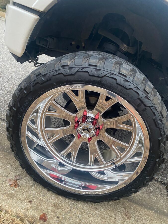 F-250 Year 2005 Make Ford Model F-250 Wheel size 22×14 Wheel Design KT001 Contender Veteran Tire Size 305/45r22 Lift 2.5” leveling kit 〈 RETURN TO GALLERY