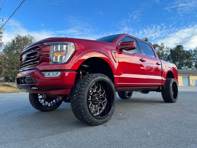 F150 Year 2022 Make Ford Model F150 Wheel size 24×12 Wheel Design Jacked non concave Tire Size 35×12.50×24 Lift 6.5” bds fox coilovers Additional Notes Built by XLR8 Motorsports Ocala Fl full paint match, 6.5” bds lift, custom powdercoat on wheels and suspension, 〈 RETURN TO GALLERY