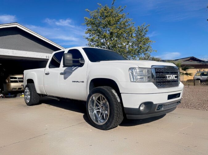 Denali 2500hd Year 2014 Make Gmc Model denali 2500hd Wheel size 22×12 Wheel Design Aristo Tire Size 305/40/22 Lift Lowered Additional Notes Lowered 4×4 duramax with 2” John c shackle, overloads removed, and the front torsion bolts relaxed. 〈 RETURN TO GALLERY