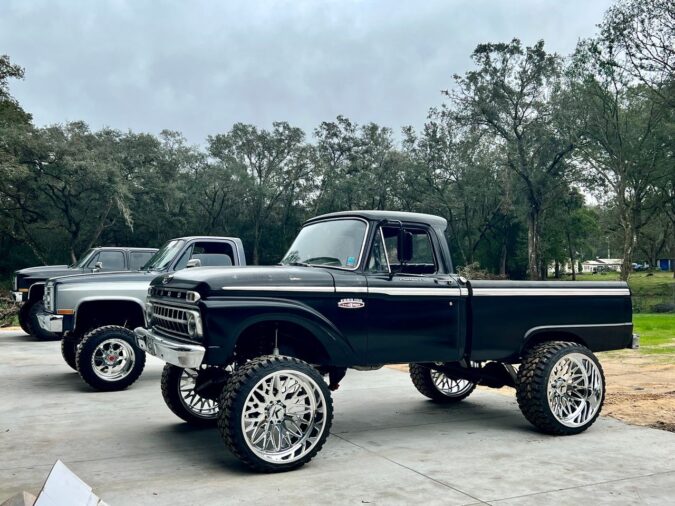 F100 Year 1965 Make Ford Model F100 Wheel size 26×14 concave Wheel Design Trident Tire Size 35×15.50×26 Lift 9” custom Additional Notes 〈 RETURN TO GALLERY